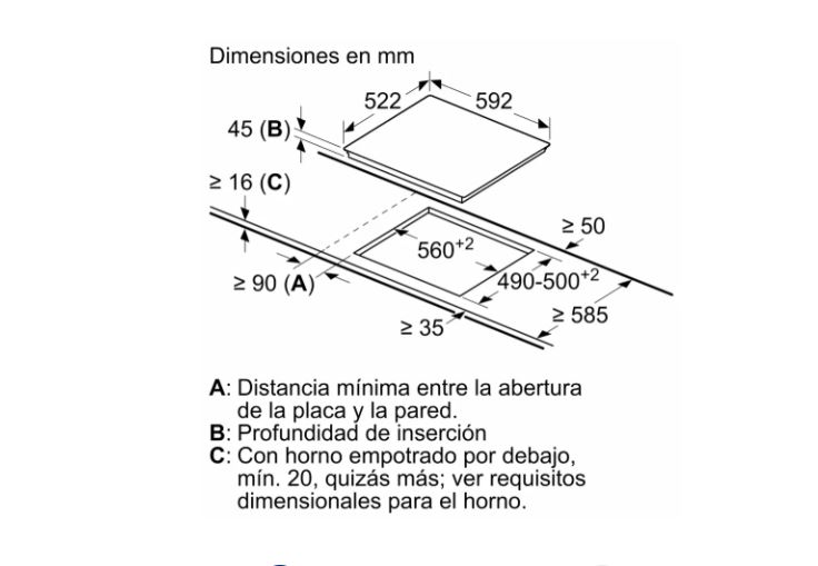 Hueco de encastre (An × F): 56 × 49-50 cm (aproximado)