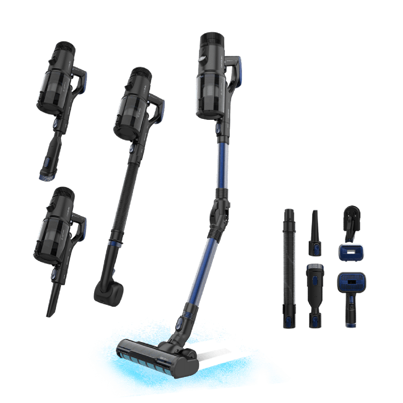 - Versatilidad instantánea. Escoge entre aspiración vertical, de mano, fregado o escoba sin perder ni un vatio de potencia y acaba con la suciedad de la forma más cómoda gracias a su tecnología 360º que aporta una gran libertad de movimiento.