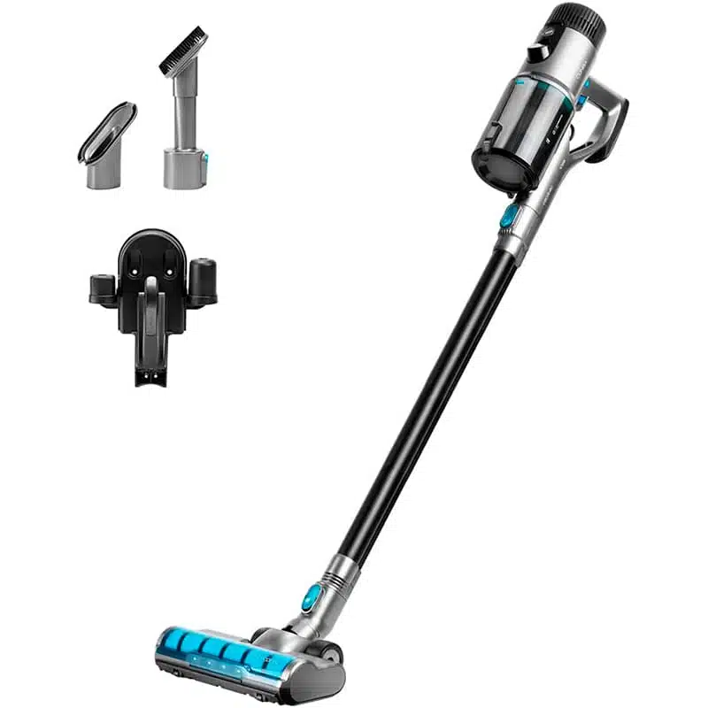 - Aspirador sin cables 3 en 1: vertical, escoba y de mano, con motor digital brushless, máxima potencia de succión y diseño 360 para eliminar el polvo de cualquier lugar.