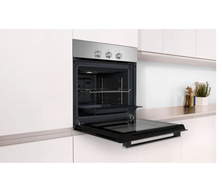 En eficiencia, luce clase energética A con consumos oficiales muy contenidos (0,98 kWh en convencional y 0,79 kWh en convección). La iluminación interior facilita controlar el punto de cocción sin abrir la puerta, y la cavidad esmaltada simplifica la limpieza. Se integra sin sorpresas en el hueco estándar de 60 cm (aparato 595×594×548 mm; encastre aprox. 575×560×550 mm) y su potencia conectada ~3.300 W garantiza respuesta rápida. El frontal en acero inoxidable + cristal negro encaja perfecto en cocinas modernas, y con los accesorios incluidos (bandeja y parrilla) puedes empezar a usarlo desde el primer día.
