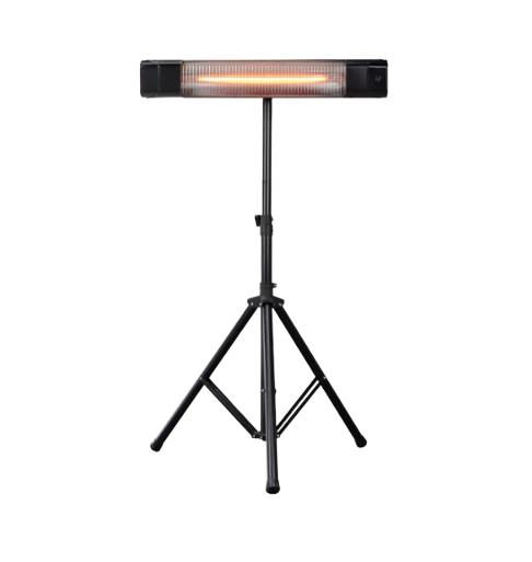 Equipada con resistencias de infrarrojos, soporte con trípode y mando a distancia, ofrece un uso cómodo, seguro y una distribución de calor directa sin pérdidas.