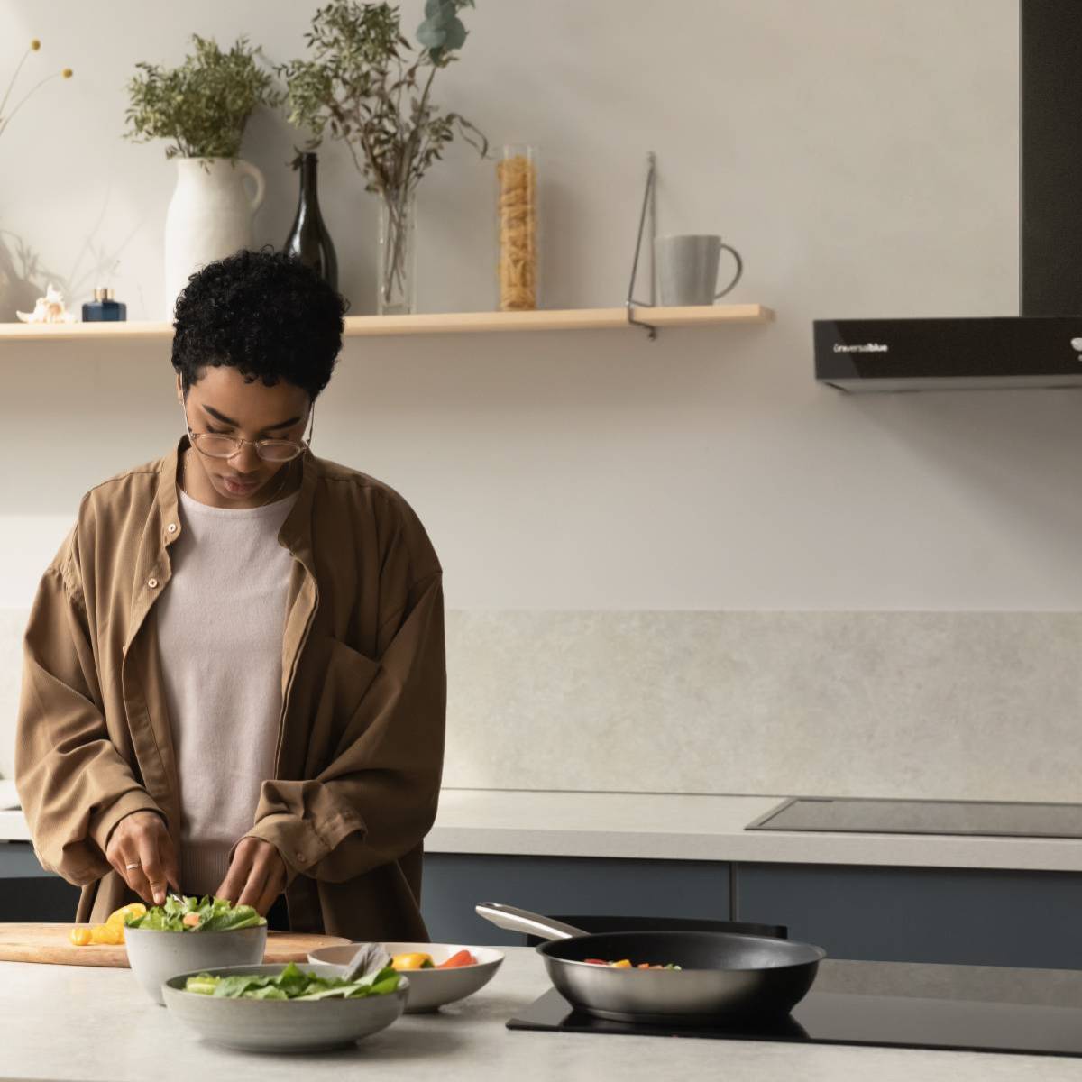 Con KENIA 6060B, nuestra campana decorativa en T de acero inoxidable y cristal negro, no solo absorberás humos y malos olores de la cocción, sino que también decorarás tu cocina gracias a su frontal en color negro de 60 cm de ancho, ¡quedará ideal en tu pared!