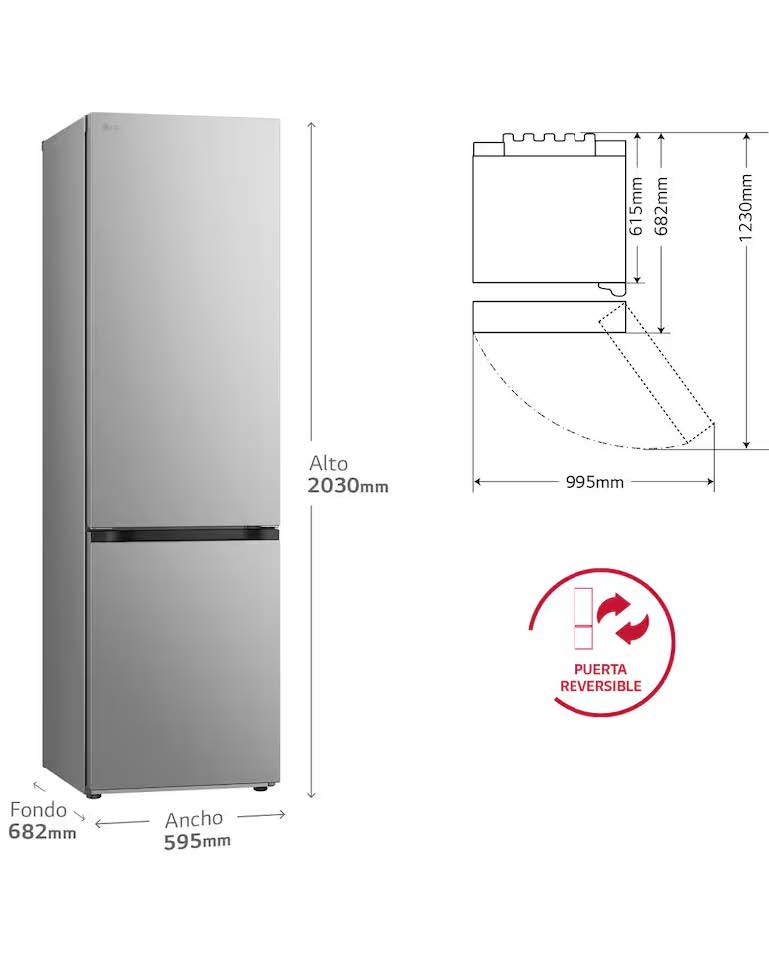 Su compresor Smart Inverter garantiza eficiencia energética (clase E) y operación silenciosa. Cuenta además con iluminación LED, estantes resistentes y fácil limpieza interior.