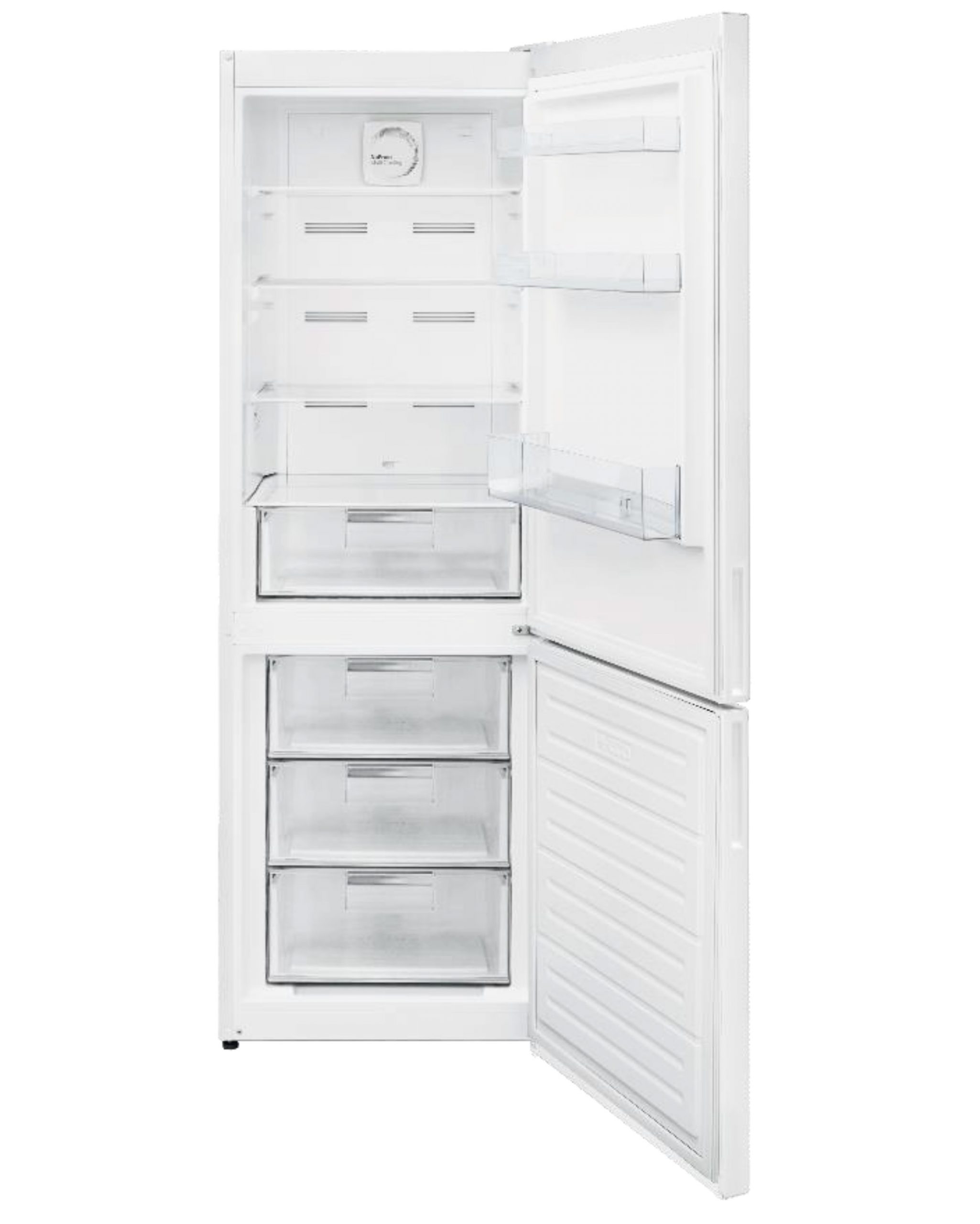 Telefunken TLKC86W: combi No Frost de 186×60 cm en blanco, pensado para frío uniforme sin escarcha y mantenimiento mínimo. Ofrece 295 L (207 L frigo + 88 L congelador), clase energética E, control electrónico preciso y puertas reversibles. Funcionamiento silencioso (~39 dB) e iluminación LED.
