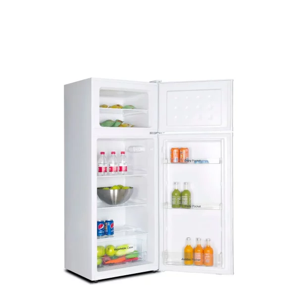 - El frigorífico de dos puertas VOK EVR-206DEW es la elección ideal para quienes buscan un electrodoméstico compacto, eficiente y elegante. Mejora la organización y conservación de tus alimentos con este moderno y práctico frigorífico.