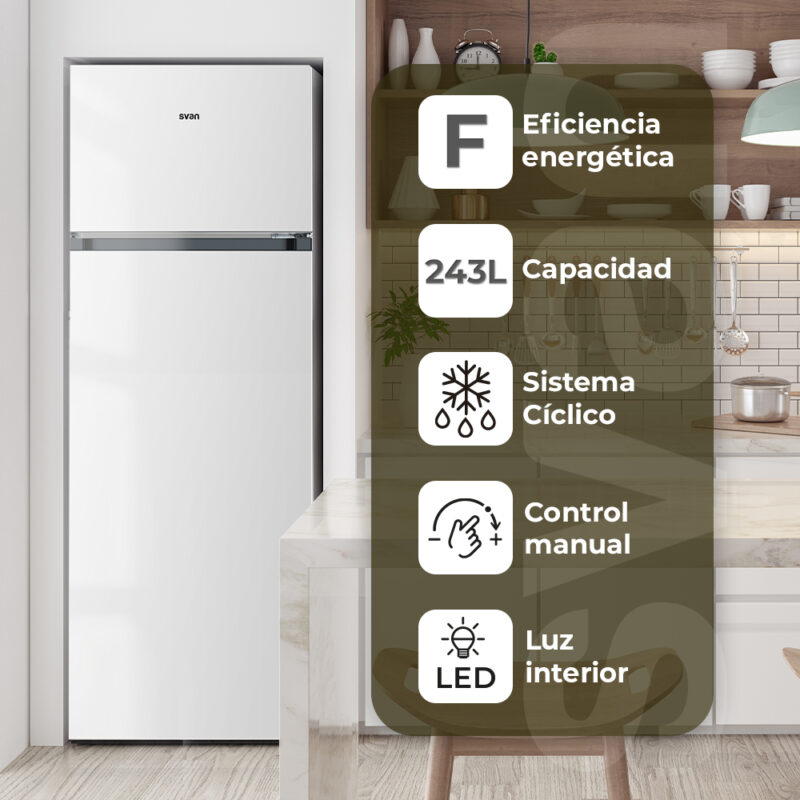 El Frigorífico SVAN SF165500F es el aliado perfecto para quienes buscan un electrodoméstico compacto, funcional y eficiente. Diseñado para adaptarse a espacios pequeños, este modelo ofrece un rendimiento excepcional y un diseño moderno que complementa cualquier estilo de cocina. Es ideal para quienes desean combinar practicidad con estética y eficiencia energética.