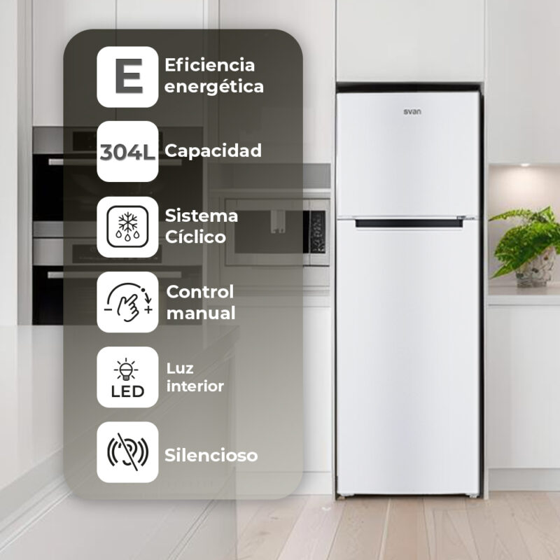 Capacidad total de 304 Litros, con congelador 4 estrellas y múltiples compartimentos para un óptimo almacenaje.