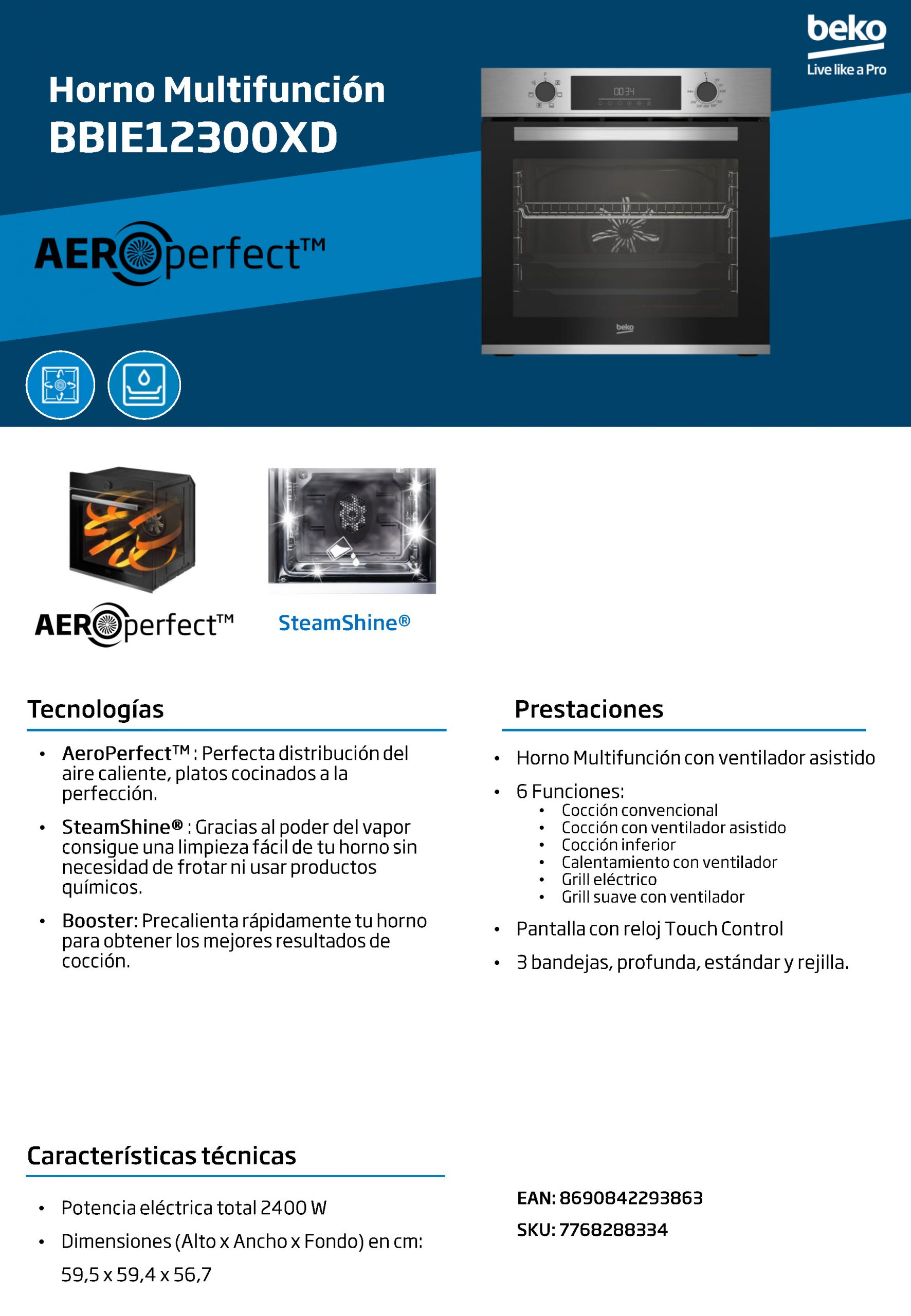 Modelo: Beko BBIE12300XD (encastre 60 cm, 1 cavidad).