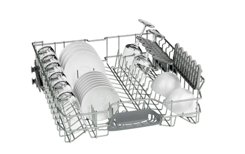 Cesta superior regulable en altura (sistema RackMatic) en hasta 3 posiciones, lo que facilita adaptar el espacio según el tamaño de ollas o copas.