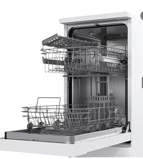 Con cesta superior regulable en altura (sin carga) y dimensiones 845 × 448 × 610 mm, permite optimizar el espacio interno y encajar en huecos de 45 cm. Acabado en color blanco con panel de control de uso intuitivo.