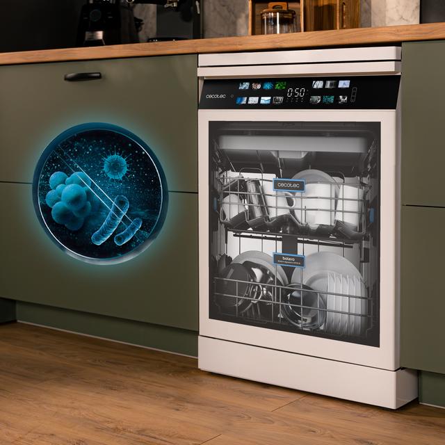 • Bandeja Ajustable: lava todo tipo de platos, cazuelas o copas, independientemente de su altura, gracias a la regulación de altura de la bandeja superior.