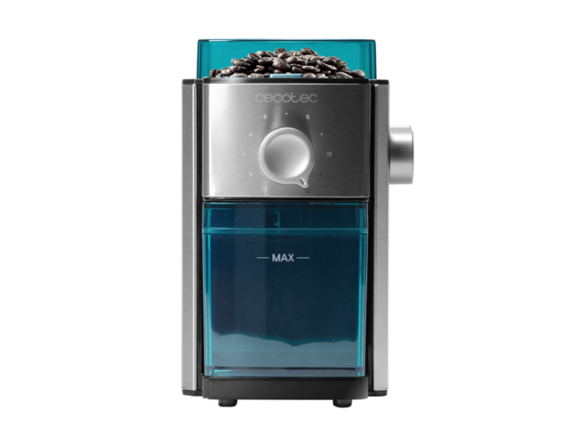 - Dispone de 150 W de potencia máxima para moler el café en segundos.