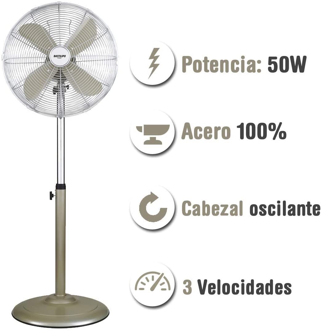 El diámetro de las aspas del ventilador de pie PALMA CHAMPAGNE es de 40 centímetros