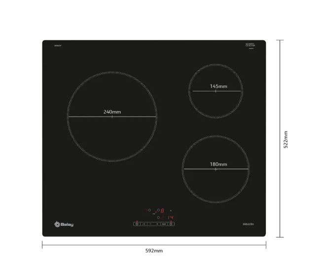 La placa Balay 3EB864FR es la opción ideal si quieres cambiar tu encimera por algo moderno, eficiente y potente: con 60 cm de ancho y 3 zonas de inducción, incluye una zona grande de 24 cm que permite usar recipientes amplios con comodidad. Su control táctil con 17 niveles por zona te da el control total de la cocción, mientras que la función Sprint®/Boost acelera el calentamiento para hervir o saltear al instante. Con funciones como programación por zona, autodesconexión, bloqueo infantil y indicador de calor residual, ofrece seguridad y facilidad de uso para el día a día. Su diseño en vidrio negro biselado, sin marco pesado, se integra de forma elegante en la cocina y es fácil de limpiar. Con medidas estándar de instalación (≈ 51 × 592 × 522 mm) y potencia total de aprox. 4,6 kW, es una solución completa para tu cocina moderna.