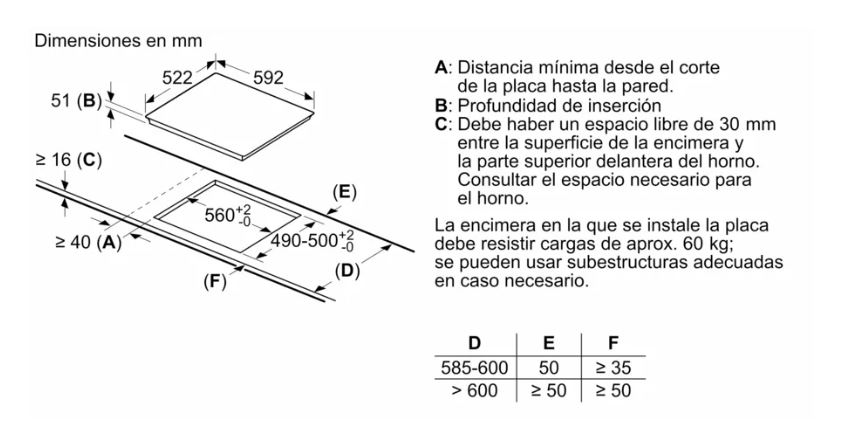 | Tipo instalación | Integrable en encimera de 60 cm |