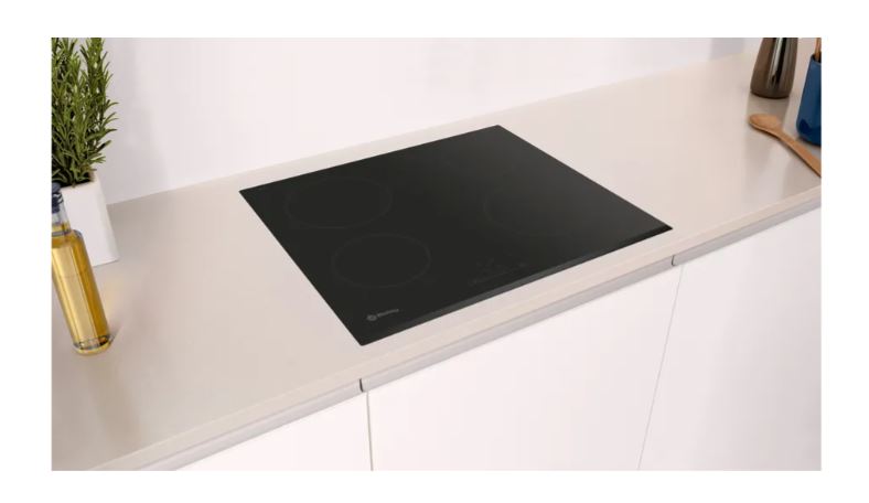 Placa vitrocerámica de 60 cm con 4 zonas y control táctil de fácil uso con 17 niveles por zona. Permite programar el tiempo de cocción de cada zona con alarma, integra bloqueo de seguridad para niños, autodesconexión anti-olvido e indicador de calor residual (H/h) en cada zona para cocinar con tranquilidad. Su diseño en vidrio negro “sin perfiles” (bisel frontal) se integra limpio en la encimera y facilita la limpieza diaria. Medidas publicadas por Balay para instalación: 45 × 592 × 522 mm (alto × ancho × fondo), compatibles con encastre estándar de 60 cm. Potencia total de la placa: hasta 6,6 kW, adecuada para hervidos rápidos y salteados con energía. En conjunto, es una vitro versátil, segura y muy fácil de usar para cocinas de uso diario.