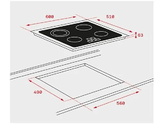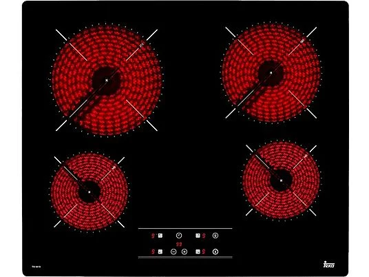Placa vitrocerámica Teka TB 6415 con 4 zonas de cocción, fabricada en cristal y con acabado en negro. Tiene una potencia de 6.300 W, apagado automático, controles sensibles frontales, seguridad infantil, indicador de puesta en marcha y testigo de calor residual. Medidas: 60 x 51 cm (ancho x fondo).