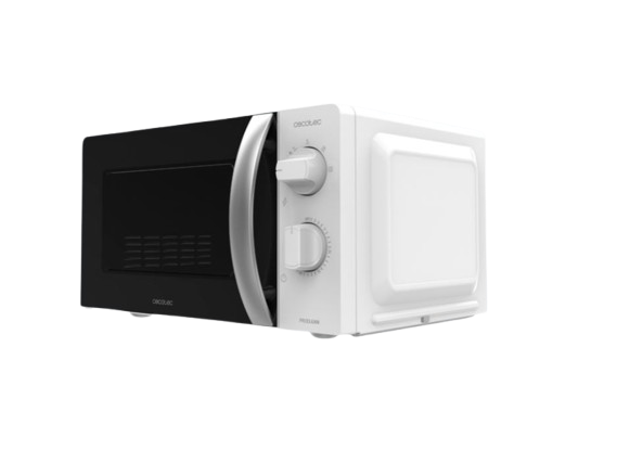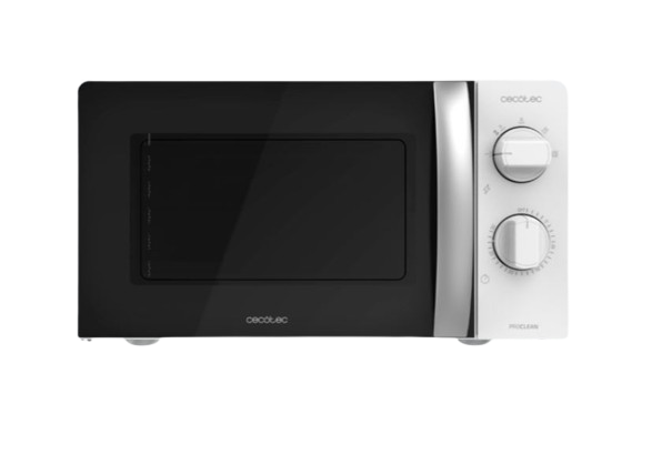 Dispone de 6 niveles de potencia y temporizador mecánico hasta 30 minutos con aviso acústico de fin de ciclo. Su manejo es muy sencillo gracias a los dos selectores giratorios (potencia/tiempo). El interior con plato giratorio facilita la limpieza y el uso cotidiano.