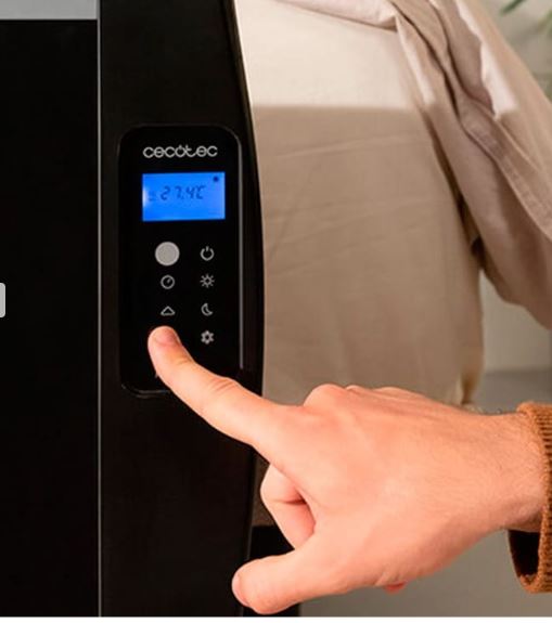 El Cecotec ReadyWarm 1200 Thermal Black es un emisor térmico eléctrico de 6 elementos y 900 W, diseñado para mantener estancias de hasta 10 m² a una temperatura confortable con bajo consumo. Incorpora pantalla LCD y mando a distancia para un control cómodo, así como temporizador programable 24 h × 7 días (WarmTimer).