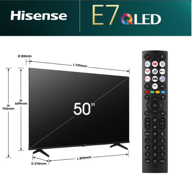 En resumen, el Hisense 50E77NQ es una opción muy interesante si buscas un QLED 4K de 50″ con HDR10+, Dolby Vision (según canales de venta), DTS Virtual:X, Modo Juego Plus, Bluetooth, Wi-Fi y HDMI 2.1, con sistema VIDAA Smart TV y una gran relación calidad-precio.