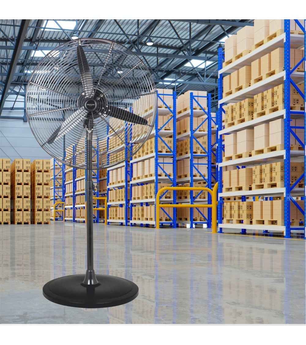 Este ventilador industrial viene equipado con una rejilla de seguridad