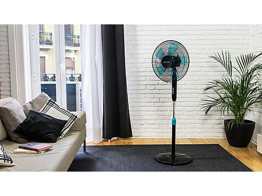 El modo de oscilación de las aspas proporciona un mayor ángulo de aireación y ofrece una amplia zona de frescor.