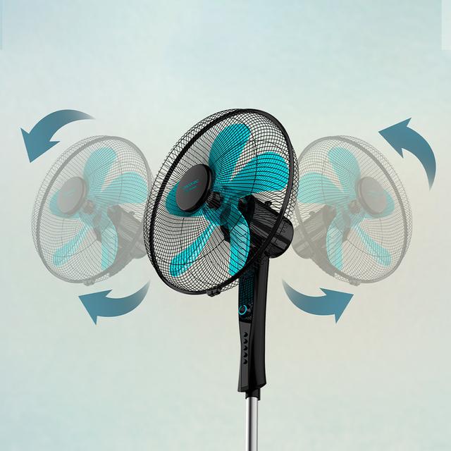 - Las 16 pulgadas del ventilador, equivalentes a 40 cm, le aportan un gran diámetro que potencia la salida del flujo de aire junto con sus 5 aspas.