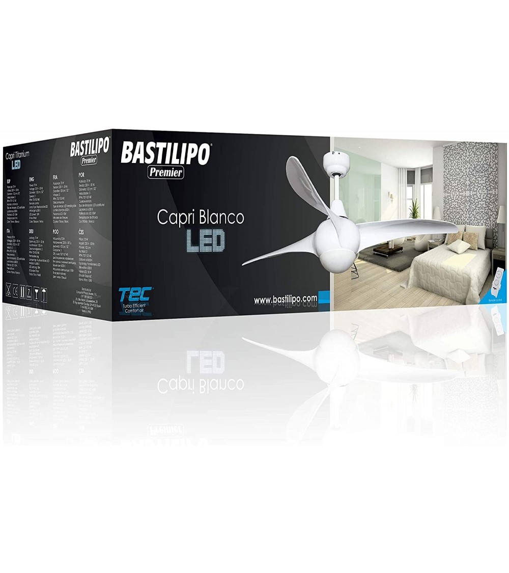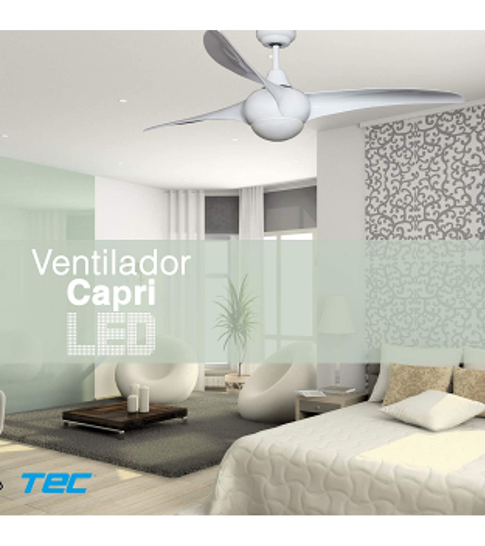 La potencia máxima del ventilador de techo CAPRI BLANCO LED es de 70 vatios
