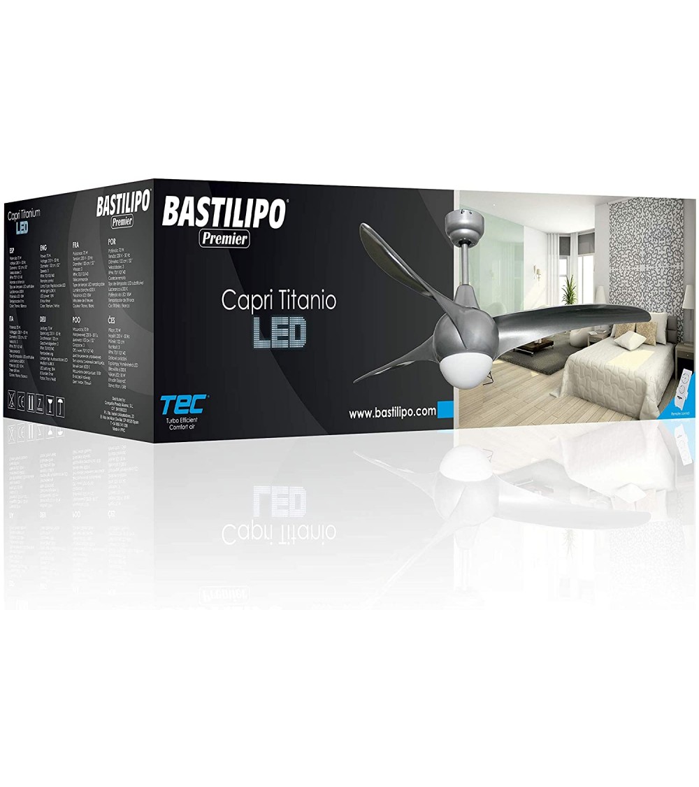 La potencia máxima del ventilador de techo CAPRI TITANIO LED es de 70 vatios